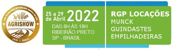 Agrishow 2022 será entre 25 e 29 de abril, em Ribeirão Preto - SP. Container Ribeirão Preto, Guincho Ribeirão Preto, Plataforma Aérea Ribeirão Preto, Plataforma Auto Socorro Ribeirão Preto, Plataforma Autopropelida Ribeirão Preto, Plataforma Tesoura Ribeirão Preto, Plataforma Veicular Ribeirão Preto.